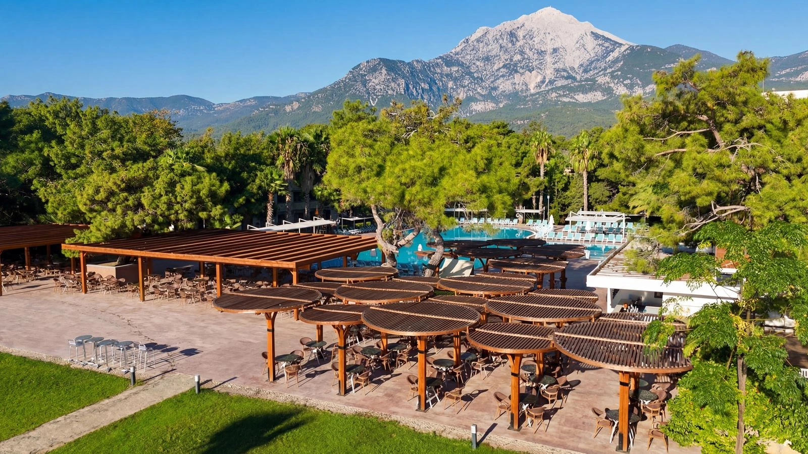 - Viešbučio teritorija vidutinio dydžio, aplink vaizdinga vietovė